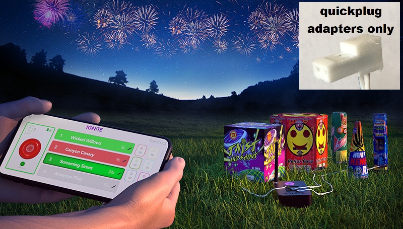 Connect the IGNITE Firewire Visco Initiators to the firework fuse and plug into the module. Igniter clips are one-time use, reliable, and affordable.