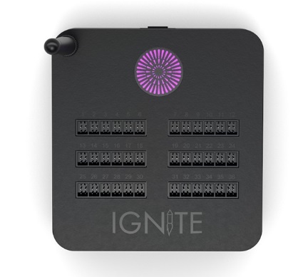 IGNITE is a reusable wireless fireworks firing system designed to shoot fireworks from your phone or tablet with a range of 150-300FT+ / 50-100M. Using the IGNITE App, you can control up to six IGNITE i18/36 modules for a total of 108/216 cues. You can have a max of 6 modules, and this can be a combination of i18s and i36s.