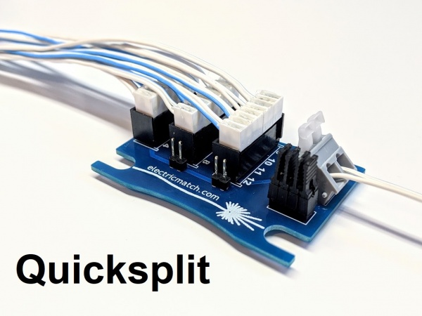 This system comes with 40 firewire visco initiators with quickplugs. See our quicksplits or breakout boards to add series firing to your system. (Total battery output is 7.4 volts, firing up to 5 in series, or 10 in parallel, see the quicksplits and breakout boards for more infomation)