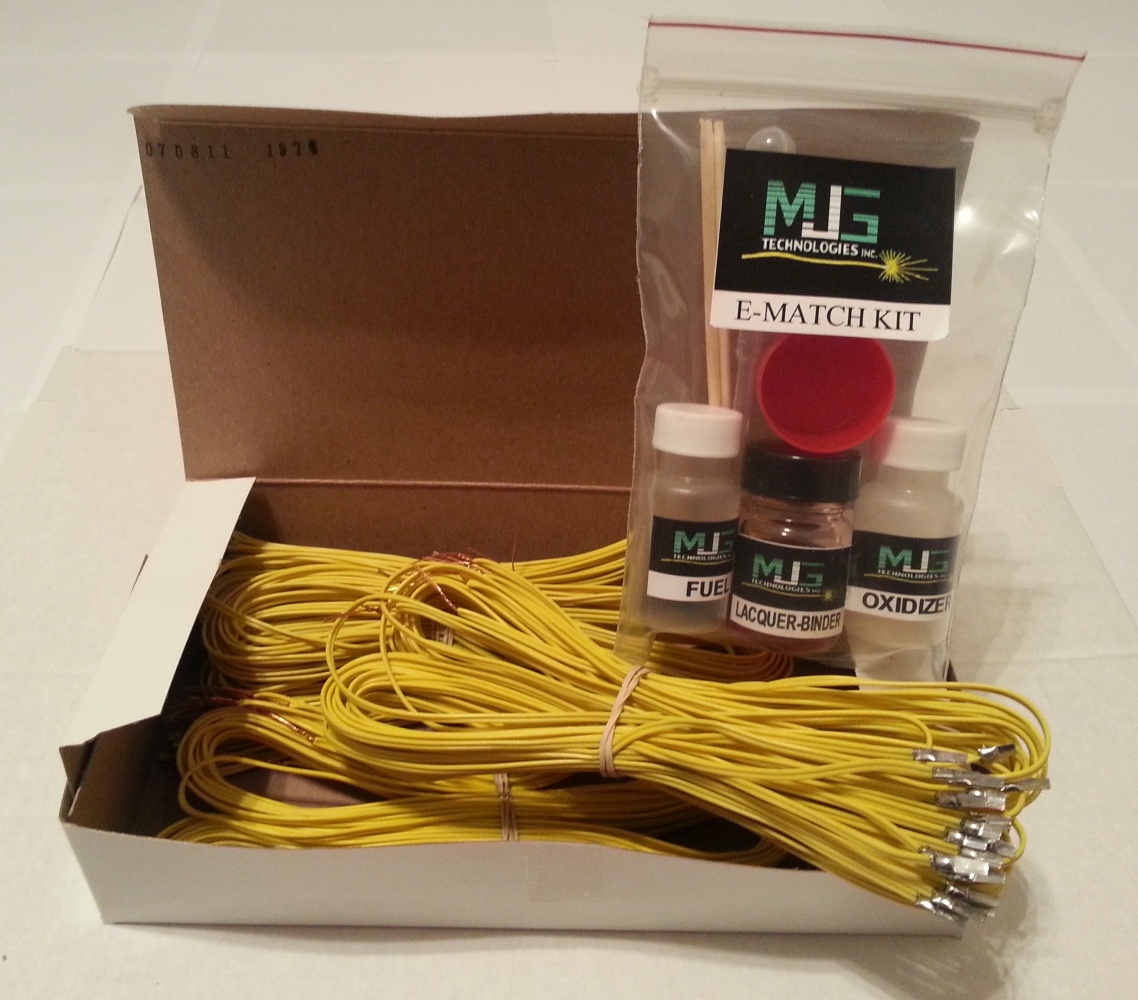This kit includes 80 – 3-foot wires with match heads soldered on. Simply mix the two jars, dip the igniter wire, and let it dry. No license is required. You must supply the acetone.